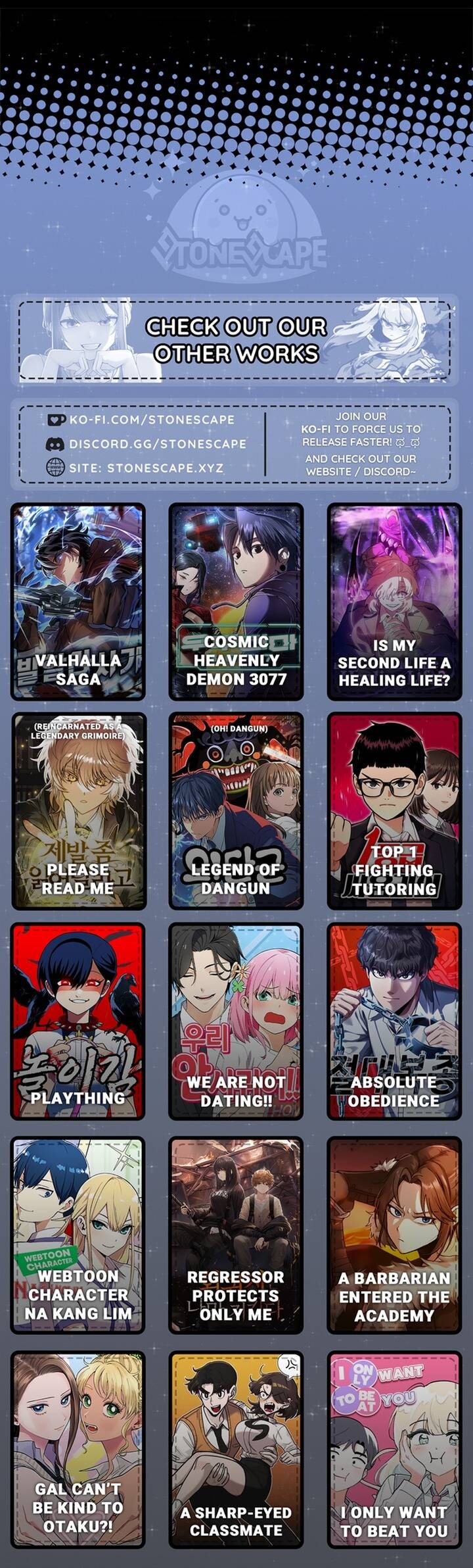 Trang web mi2manga là nới các fans yêu truyện tranh với giải trí tính thần và chúng tôi không chịu trách nhiệm về nội dung hoặc các quảng cáo hoặc các liên kết từ bên thứ ba được hiển thị trên trang web. Tất cả các thông tin về truyện và các hình ảnh liên quan đều qua sự tổng hợp từ nhiều nguồn chia sẻ miễn phí vì thế Mi2 Manga cũng không chịu trách nghiệm về tính xác thực và nội dung.